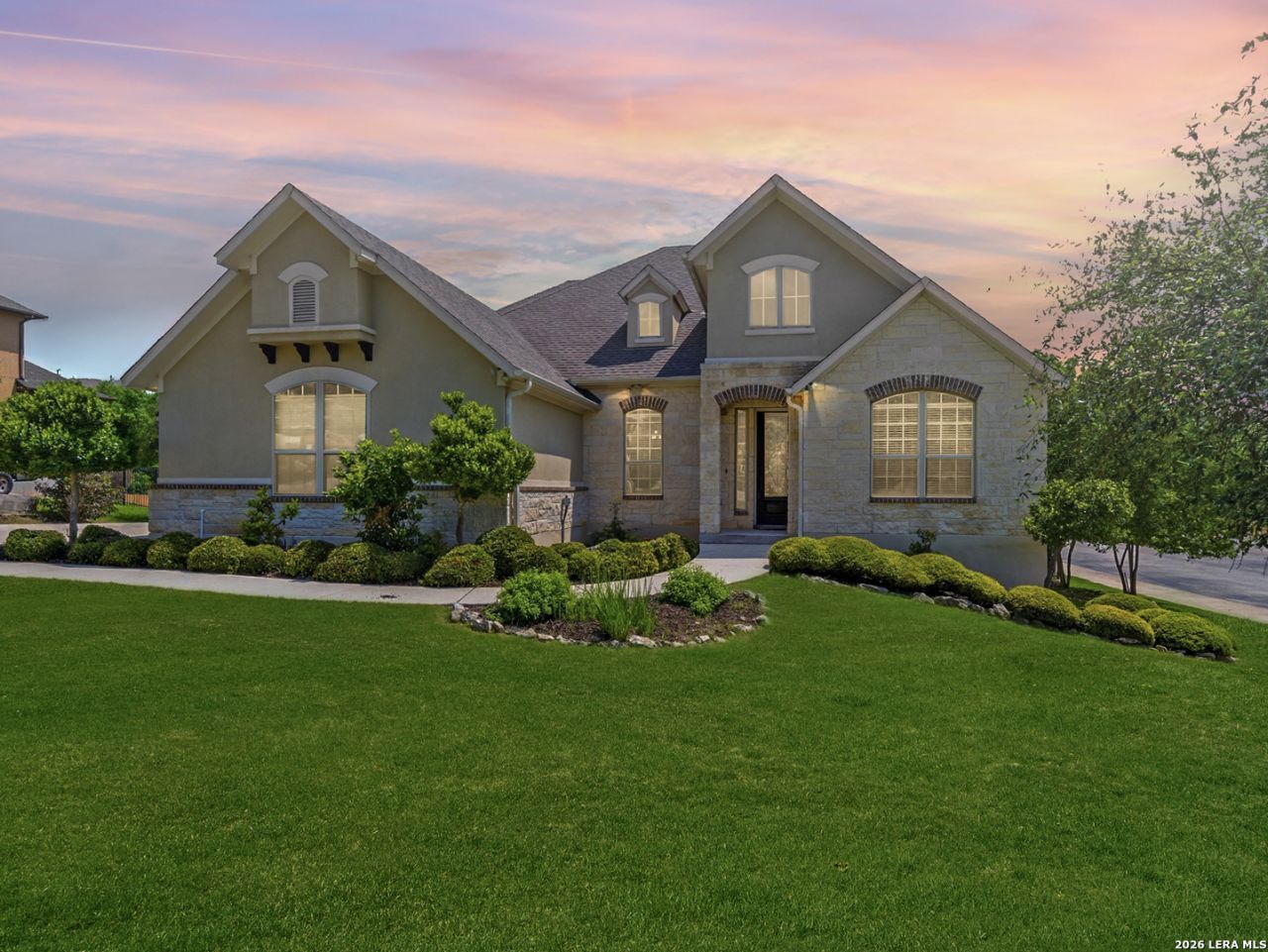 Experience the lifestyle youve been searching for in the exclusive 24-hour guard-gated community of Summerglen. This rare single-story home blends luxury, comfort, and easy indoor-outdoor living. From the moment you enter, tall ceilings, expansive living areas, rich wood floors, crown molding, and a stunning stone fireplace create a warm yet impressive atmosphere. The thoughtfully designed layout features a private study, elegant dining room, versatile flex space with French doors, 1/2 bath, and a private guest suite with a full bath. At the heart of the home, the kitchen boasts an oversized island, counter-height seating, double ovens, gas cooking, stainless steel appliances, abundant storage, and a large pantry, all opening beautifully to the great room and breakfast area. The private primary suite feels like a retreat, complete with outdoor access and a spa-like bath with a soaking tub and oversized shower. Additional highlights include a mudroom area, spacious laundry room with cabinets and sink, water softener, and 3-car garage, recently painted deck, new pool control panel & pump booster, and so much more! Step outside to your own backyard escape with a covered patio, large expansive deck, and sparkling Keith Zars pool with waterfall, designed for unforgettable entertaining and relaxing evenings at home. Summerglen is a premier neighborhood premier neighborhood with award-winning NEISD schools and no city taxes. After years of construction, HWY 281 is now open northbound & southbound making the drive to and from 1604 quick & easy. Conveniently located close to JW Marriotts TPC golf course, San Antonio airport, Stone Oak shopping, & dining, hospitals, and major employers. WELCOME HOME!