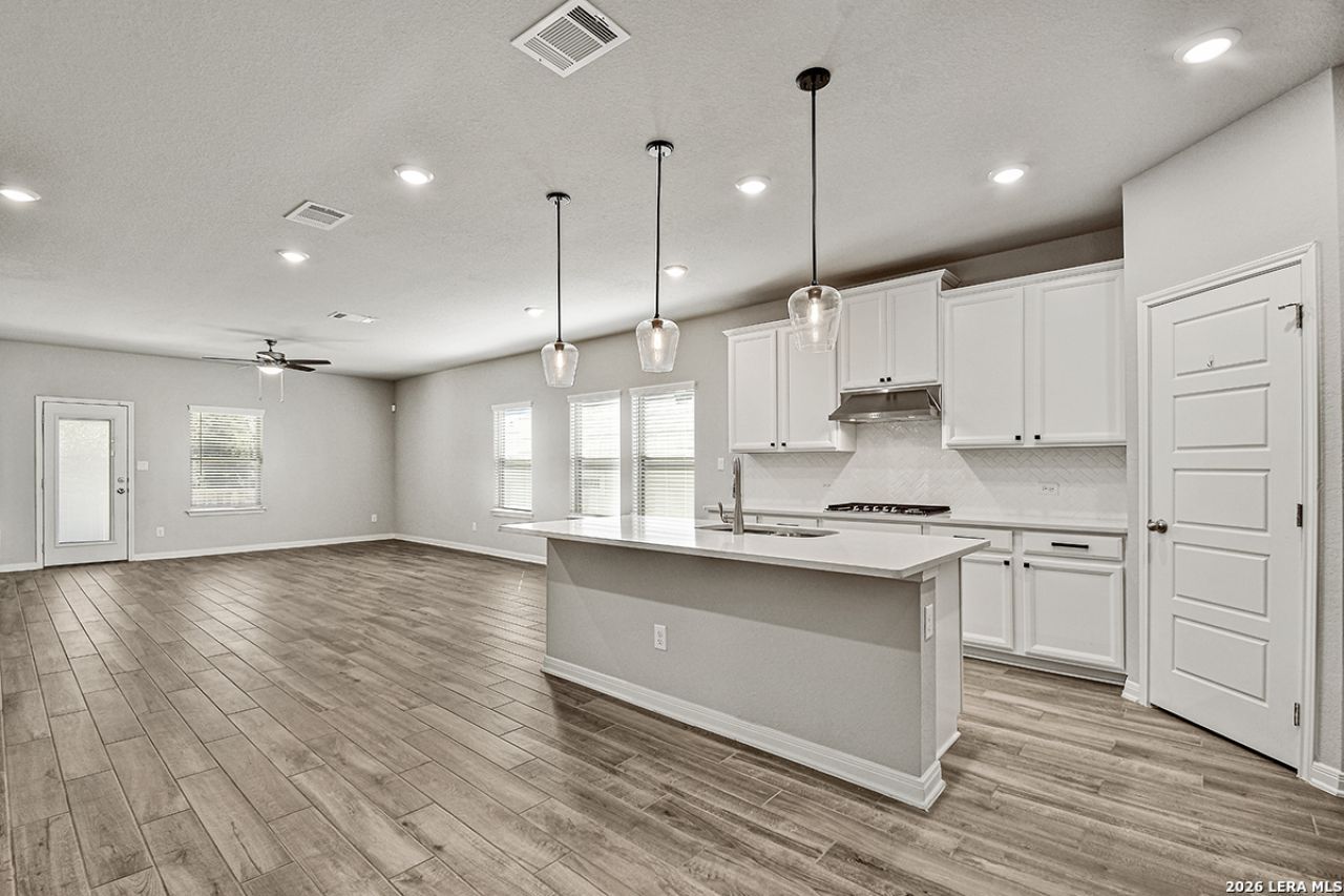 Mint condition, two-story dream home in Boerne, TX. Built in 2022, this home has four bedrooms and two and a half bathrooms, gas range and lawn sprinklers! Primary bedroom, laundry room, half bath, and home office are on the first floor. The second floor has second living area, and three additional bedrooms with one full bathroom. Backyard is spacious with covered patio and has gas outlet ready for a grill hookup. Scenic Crest neighborhood offers a great proximity to I-10, The Rim, La Cantera, Six Flags Fiesta Texas, and an array of shopping, and dining.