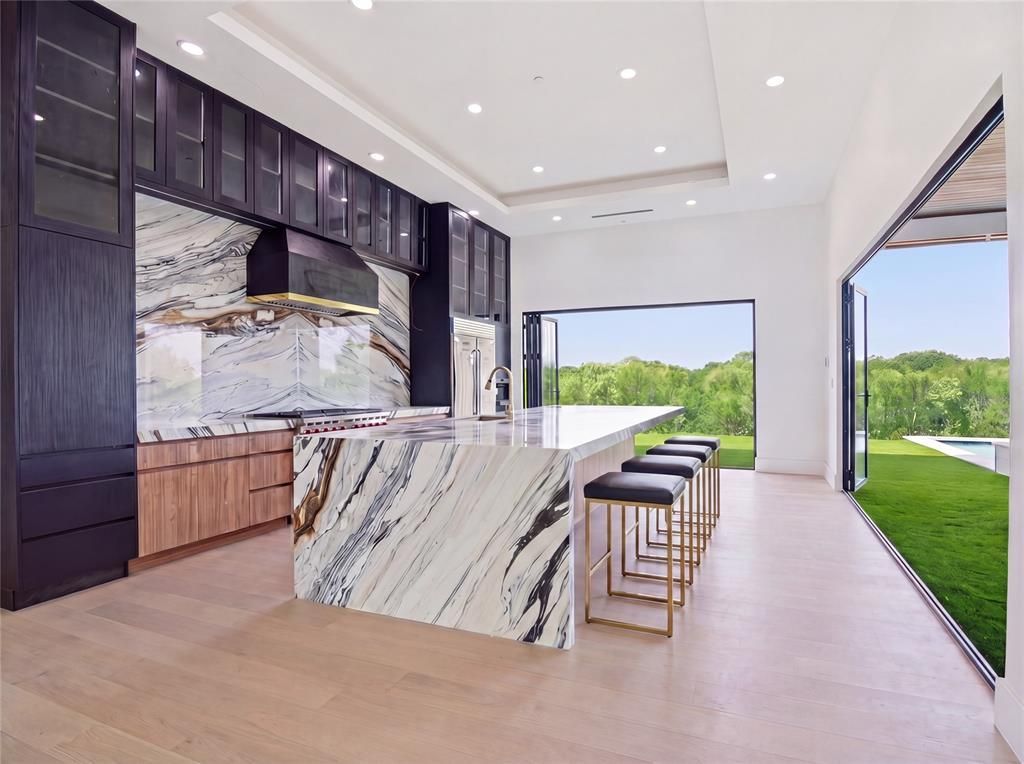 LOCATION. LAKE VIEWS. NATURE PRESERVE. Welcome to 2800 N Kimball, where architectural brilliance meets natural serenity on 2.69 lush acres with breathtaking Grapevine Lake & full access to nature preserve. Over 13,000 Sq Ft under roof this masterpiece showcases 3 and a half levels of unparalleled luxury. An elevator provides seamless access to all three levels.Enter through a grand 10-foot iron and glass pivot door into 26-ft soaring ceilings. The great room boasts a stunning 16-foot bookmatched blue diamond wall with linear fireplace and custom marble accents. Folding glass doors reveal a resort-style oasis with treetop-level infinity edge pool, custom spa with outdoor screens, & interconnected climate control throughout. The culinary kitchen features a waterfall marble island, 48-in Wolf range, Sub-Zero refrigerator, and Wolf coffee maker, and adjacent scullery with professional appliances. The dining room captivates with a glass-encased wine wall beneath 26-ft ceilings, while the sophisticated study displays bookmatched features and black fluted wood accents. The luxurious primary suite offers 12-ft tray ceilings, 48-inch gas fireplace, and spa-inspired ensuite with RARE Brazilian blue agate wall, Hollywood soaking tub, herringbone glass tile & cathedral ceiling. Two custom closets include a reinforced vault room & full laundry suite. A relaxation room with coffee bar opens to private pool cabana.First level presents five ensuite bedrooms. The lower level features entertainment sanctuary with wet bar, ensuite bedroom, flex room, and nine-car collector's garage. Upper level boasts game room, media room, covered balcony with Lake Grapevine views, and turfed rooftop with epic panoramic vistas stretching to the horizon. NO HOA. Carroll ISD. Estimated completion late Spring of 2026. 1-2 min. drive to boat ramp & 10 min drive to DFW airport. For the horse hobbyist, an Equestrian Barn suitable for up to 4 horses awaits you. Hiking trails from barn to the lake.