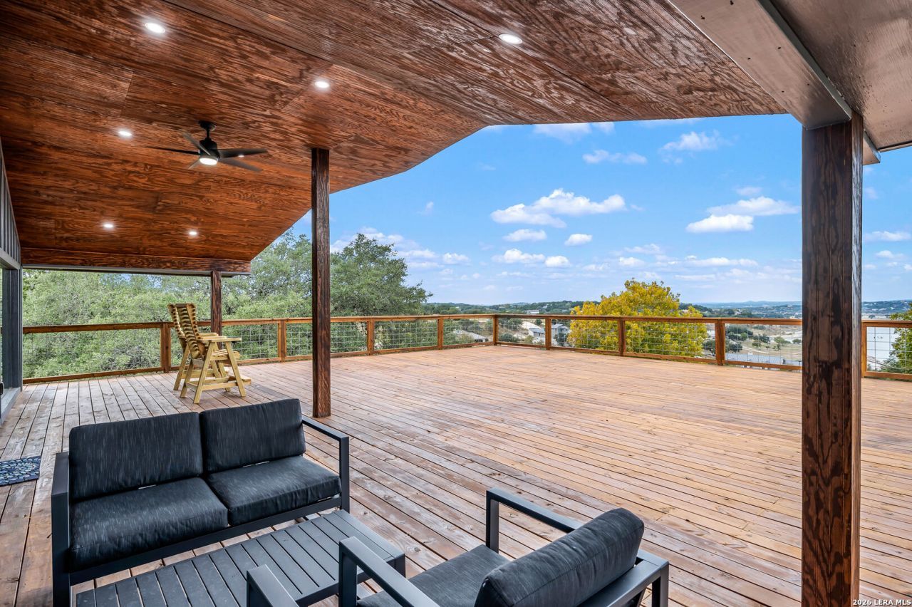 Experience the pinnacle of lakeside living in this modern masterpiece overlooking Canyon Lake. Offering an airy, open concept floor plan, this home seamlessly blends warm wood tones with contemporary design. The heart of the home is the upper-level Great Room, where a soaring wall of glass offers unparalleled, panoramic views of the water. The gourmet kitchen is a chefs dream, featuring a massive island with bar seating, double ovens, a pot filler, and premium stainless steel appliances. Retreat to the primary suite, a private sanctuary with pool views and a spa-like ensuite featuring a custom walk-in tiled shower and dual vanities. The lower level serves as a versatile secondary living space, perfect for an expansive media room or guest quarters, offering two large bedrooms and a custom bunk room. Outside, the property is an entertainers paradise: relax on the massive covered deck with a custom swing, take a dip in the private pool, or host from the oversized outdoor bar. Located just minutes from multiple boat ramps, this is more than a home; its a permanent vacation.