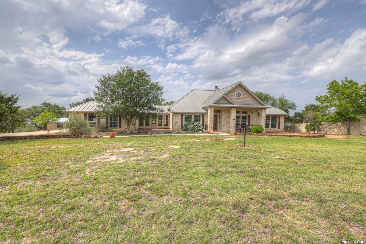 Stunning White Stone Home Sitting on 2.62 Acres of Hill Country Views! You will enjoy the breath taking views throughout the Home with an abundance of windows providing wonderful natural light. Enter the fully fenced property through the Electric Gate as you sink into peace, quiet and tranquility the property offers. This Home has 3 Bedrooms and a large Office with French Doors. The Wood Flooring and No carpeting in the Home is a big plus! Open floor plan with a Lovely White Stone Fireplace in Great Room in the Heart of the Home. Large covered patio and outdoor Fireplace perfect for outdoor Entertaining and Evening relaxation of Sunsets and Beautiful Views of Texas. Continue down the long Path to the Elaborate Workshop or drive down the private concrete Road . This property is truly Unique and extremely well priced. Call today and schedule a visit!